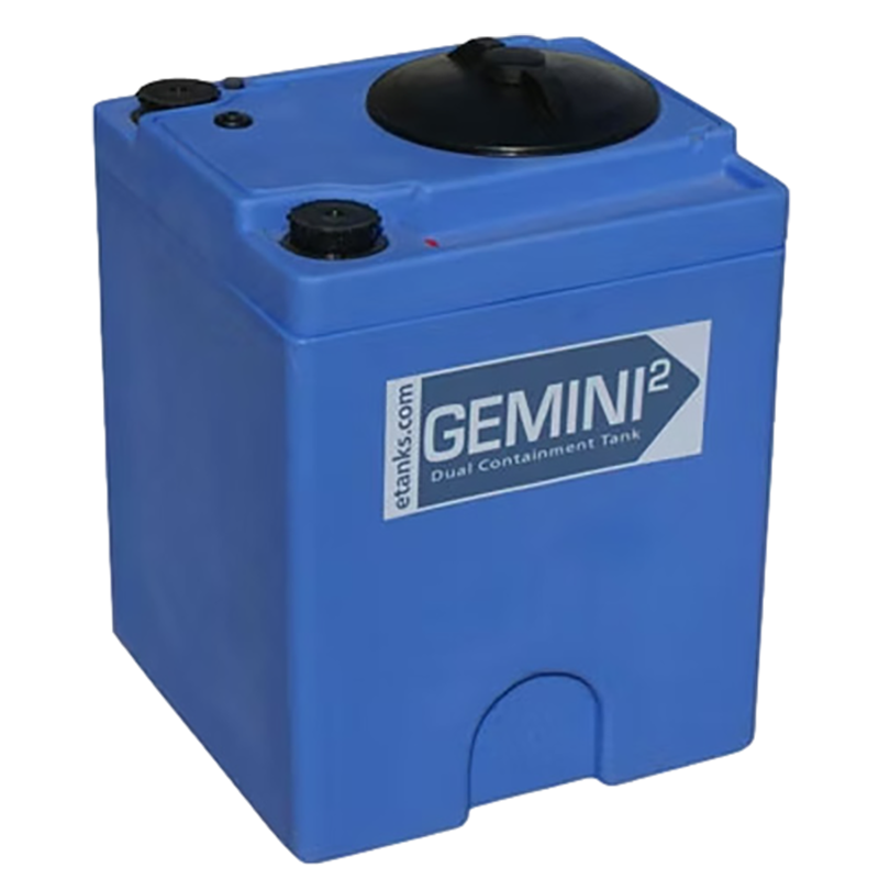 The Gemini² series of tanks are rated for a wide range of chemical applications. All tanks meet or exceed secondary containment regulations set under EPA 49CFR. These tanks are designed with a pump mounting surface, female threaded connections, and a twist lid inspection port.