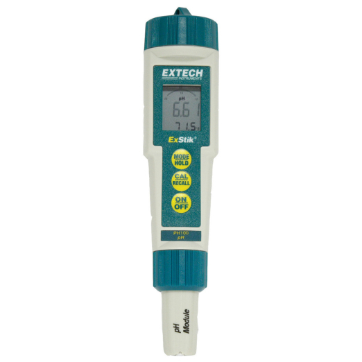 Meter with flat surface electrode for fast and easy on-the-spot pH measurements. Complete with flat surface pH electrode, protective sensor cap, sample cup with cap, four 3V CR-2032 button batteries, and 48" (1.2m) neckstrap.