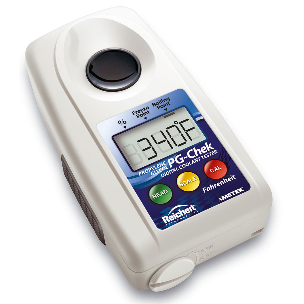 The Reichert Digital PG-Chek accurately and effectively tests Propylene Glycol coolant Freeze Point, Boiling Point, and % Concentration. This fast, simple test provides greater peace of mind for customers while increasing your service business.