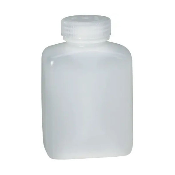 Heavy-walled, high-density polyethylene (HDPE) bottle features wide mouth for easy filling and leak-proof polypropylene cap. Rectangular shape for maximum space efficiency and less damage in shipping. Suitable for both aqueous solutions and solid samples.