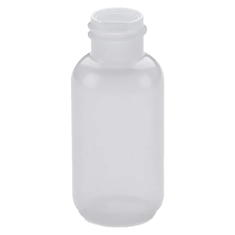 2 oz. round polyethylene bottles only. Caps and plugs sold separately.