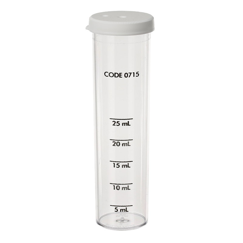 marked at 5, 10, 15, 20, and 25 mL