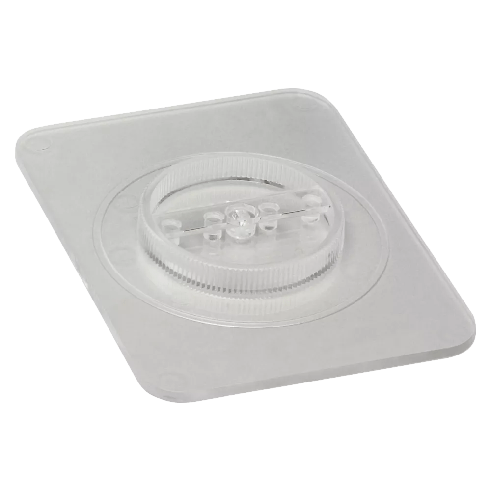 This spreader is specially designed for use with the Neogen® Petrifilm® Yeast and Mold Count Plates. Once the sample has been prepared, the top film is lifted from the Neogen® Petrifilm Plate to expose the inoculation area and the diluted sample is added. The technician places the film onto the sample then uses the spreader to distribute the sample. The clear acrylic construction of the spreader allows the technician to ensure proper inoculum distribution.