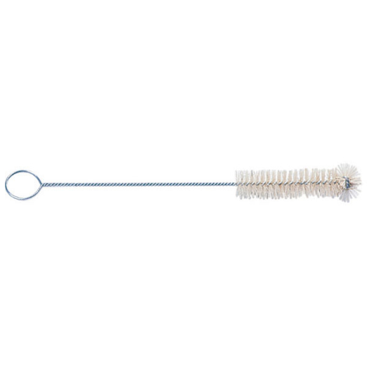 Brush part, 9 cm (3.5") length; 2 cm (0.79") diameter. Total length: 24 cm (9.5"). Unbleached white bristles on galvanized wire. Radial tufted end.