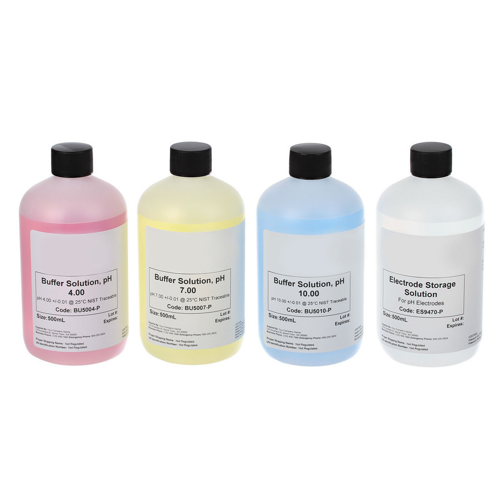 Our buffer pack includes one 500 mL bottle each of pH buffer 4, 7, 10 and Electrode Storage Solution giving you everything you need in one convenient package. Also available in 60 mL bottles!