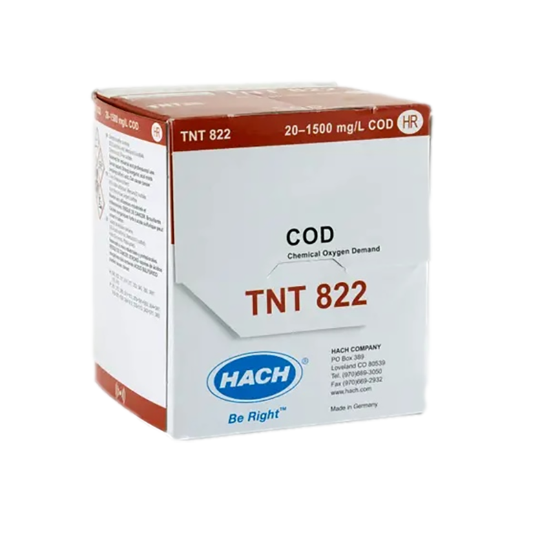 Hach TNTplus COD vial test reagents are incredibly simple to use and cut down significantly on waste generation compared to other COD test kits. TNT822 is based on Hach Method 8000 for virtually any type of water sample. Method 8000 is USEPA approved for wastewater analysis under 40 CFR 136.3 and based on Standard Methods 5220 D.