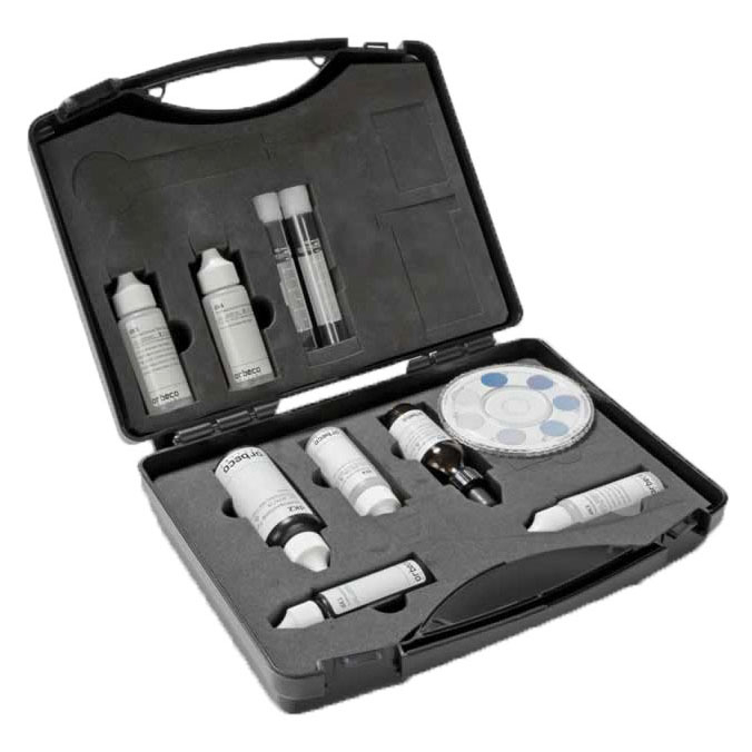This microbicide test kit enables the rapid and accurate measurement of active microbicide in a range of industrial colling water applications. The test can be performed on-site at the cooling tower, eliminating the requirement to return the sample to a laboratory for evaluation. Includes reagents for 50 tests, color scale disc, 2 sample cells, instruction manual and carrying case.