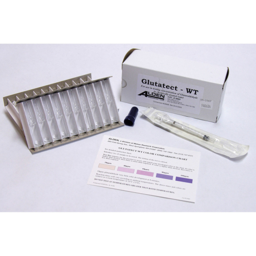 20-100 ppm, 30 ampoules / The Glutatect WT Test Kit measures glutaraldehyde utilizing a 5 minute test procedure and measures 20 to 100 ppm glutaraldehyde "activities."