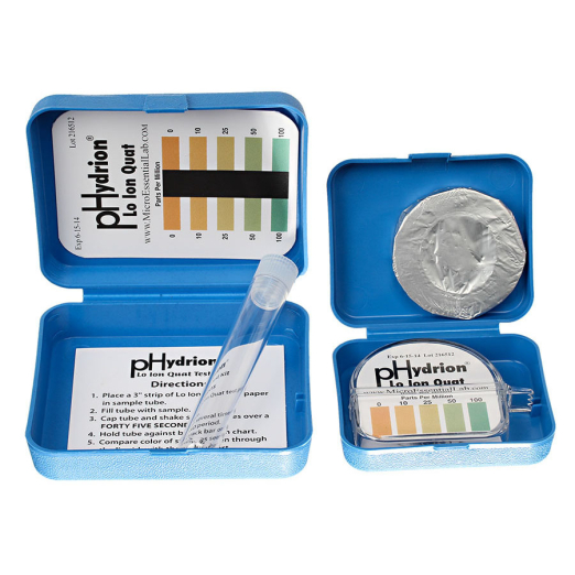 Simple and cost effective method of measuring the concentration of quaternary concentrations. Color matches at 0-10-25-50-100ppm